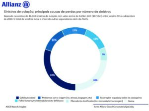 A análise da AGCS de mais de 46.000 sinistros de seguros de aviação de 2016 até o final de 2020 no valor de mais de 14,5 bilhões de euros (17,3 bilhões de dólares) mostra que os incidentes de colisão/acidente representam mais da metade do valor de todos sinistros. Outras causas dispendiosas de perdas incluem defeitos de fabricação/manutenção e quebra de máquinas.