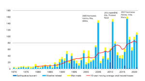 Eventos climáticos extremos em 2021, incluindo congelamento invernal profundo, inundações, tempestades severas, ondas de calor e um grande furacão, resultaram em perdas anuais seguradas de catástrofes naturais estimadas em
