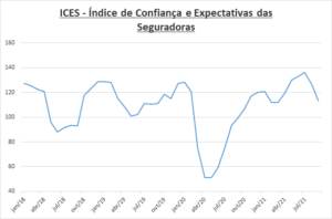 Por exemplo, nas seguradoras, em julho, o indicador de confiança estava em 135 pontos. Em setembro, passou para o patamar de 115 pontos.