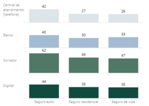 O levantamento também apontou a importância de manter o cliente satisfeito em um mesmo canal, uma vez que a mudança do digital para o humano deixa o cliente menos satisfeito com a experiência. No seguro auto, por exemplo, clientes que iniciam seus episódios em canais digitais reduzem seu NPS em 15 pontos, em média, ao serem forçados a migrar para um atendimento humano.