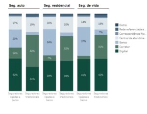 A entrada de players digitais no setor de seguros tem impactado também os canais, conforme novas empresas de seguros para auto, vida e previdência totalmente digitais surgem no mercado. “Isso confirma que a indústria de seguros está atrás dos demais ramos de serviços financeiros em digitalização e grandes players precisam estar atentos para o movimento atual de serviços remotos”, completa Mattos.
